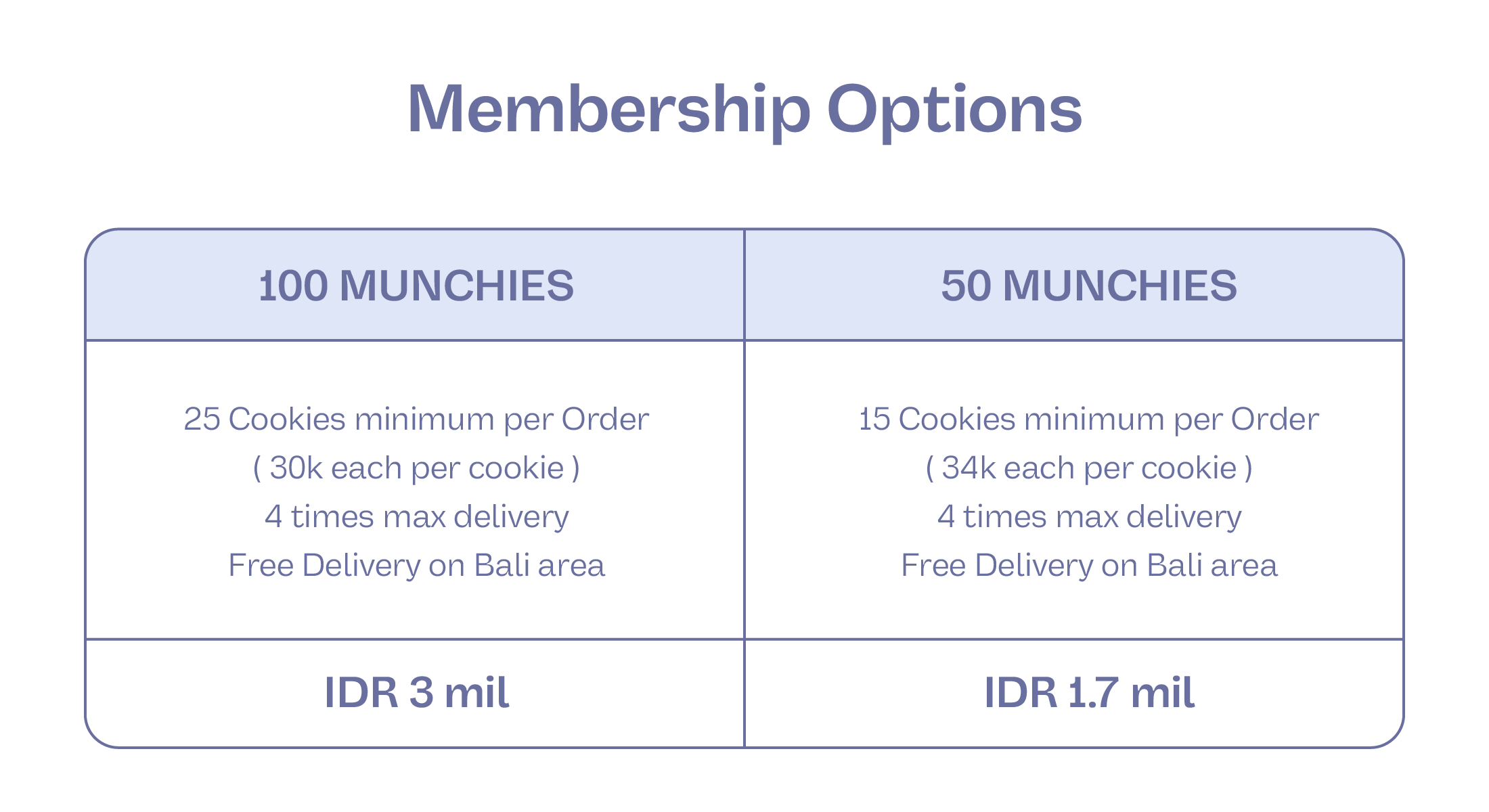 Lock in special member price (up to 30k each) and enjoy priority delivery. Contact us to choose your subscription plan and enjoy your favorite fresh protein cookies anytime within 3 months.